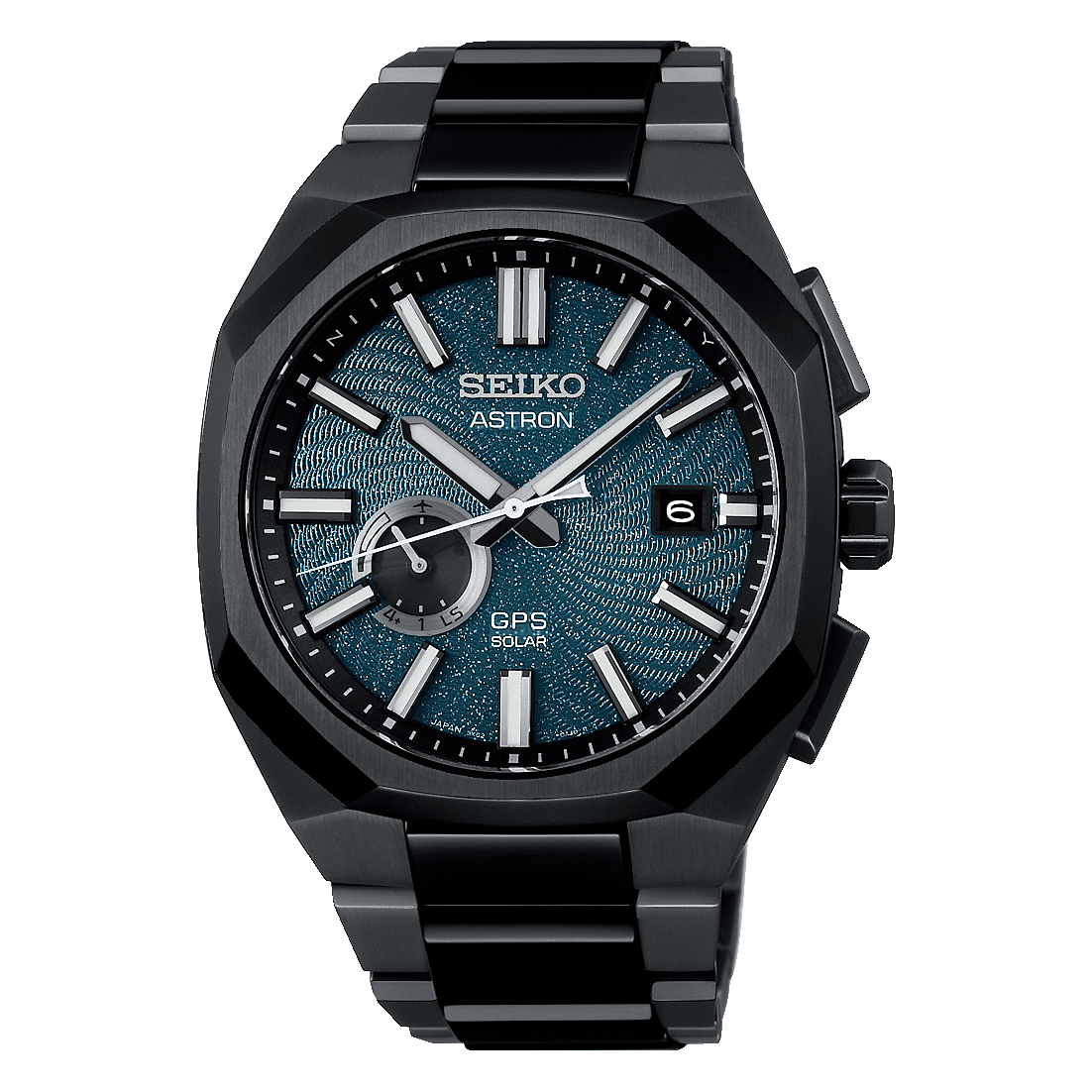 This watch’s dial features a newly developed embossed spiral pattern, which radiates from the center to convey the energy of flowing stars